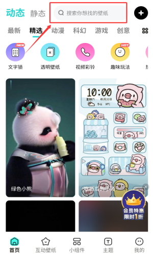 3、在精選壁紙界面,選擇并點擊紅框標注的熊貓圖案壁紙。