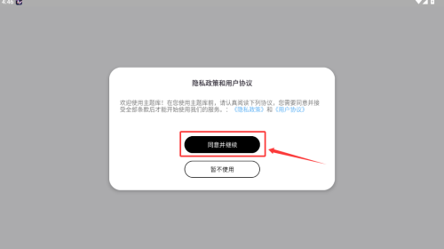 1、首次啟動應用需閱讀并同意用戶協議,隨后即可在“主題”板塊瀏覽各類根據手機型號適配的完整主題套裝,并選擇導入使用。